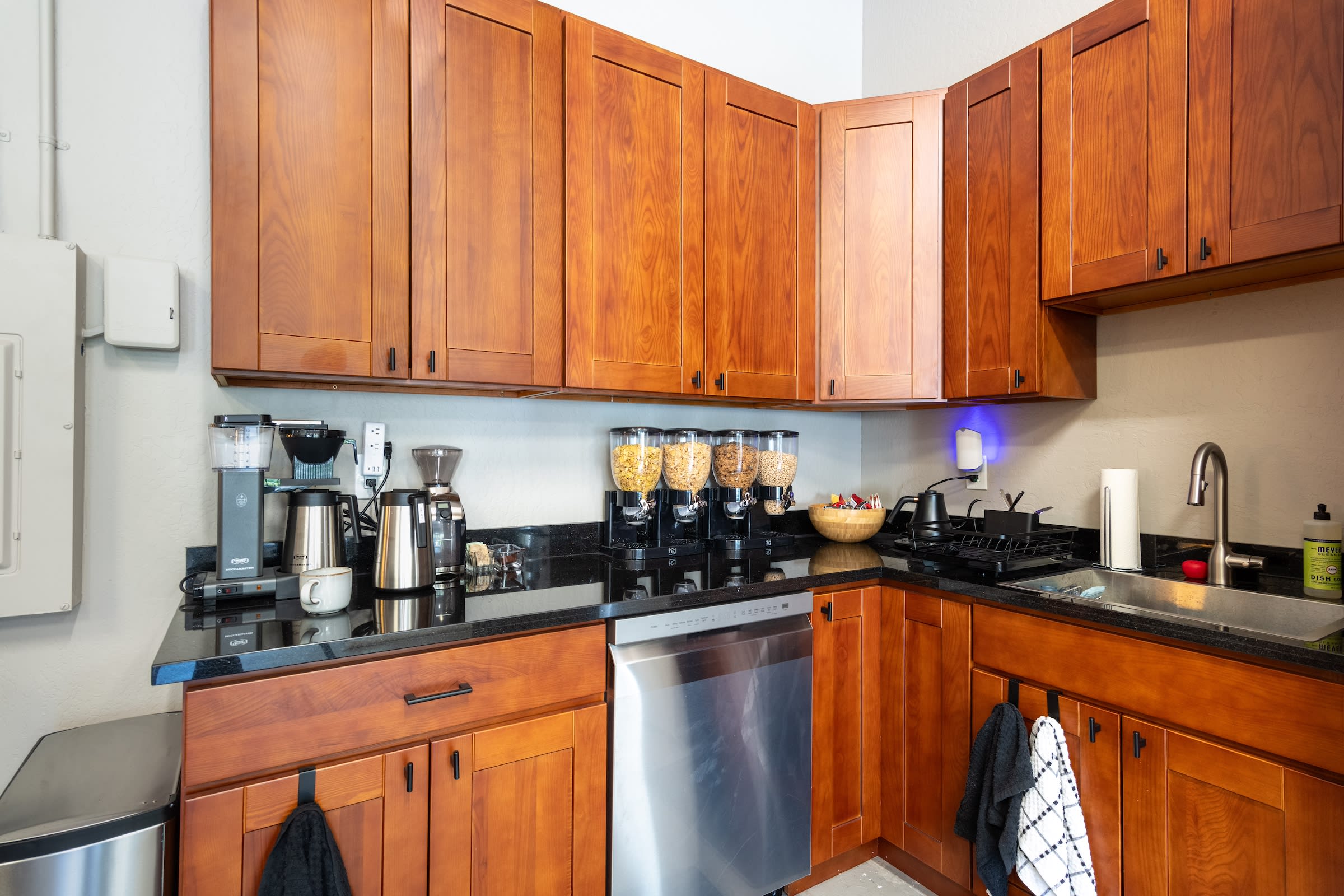 During the day, we offer a casual coworking spot, with free snacks and drinks, blazing fast wifi, open areas for communal working, and private spaces for calls.